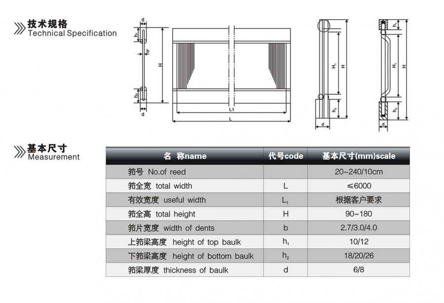 Product description:專業(yè)定制噴氣和劍桿雙層鋼筘